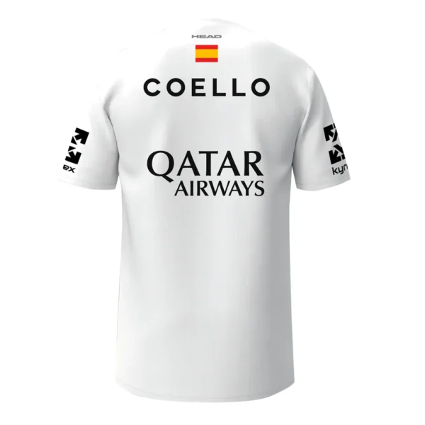 Made from **knitted jacquard 100% polyester**, this shirt features Coello’s sponsor logos and is designed to keep you cool even during intense matches. Its **body-mapping** ventilation zones and innovative **Moisture Transfer Microfiber** technology by HEAD provide a refreshing effect and accelerate fabric drying.